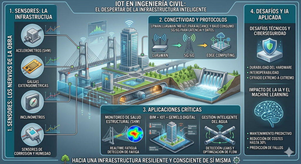 Para que una estructura sea inteligente, primero debe ser sensible. El despliegue de sensores IoT en la ingeniería civil abarca una gama técnica fascinante: